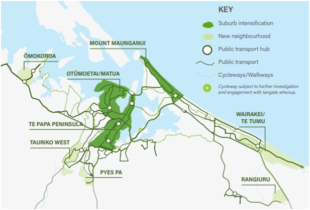 | Tauranga Crossing bus facility improvements | Transport infrastructure, including a public transport hub, to support multi-modal access to and from the Tauriko commercial area in and around Tauranga Crossing. |